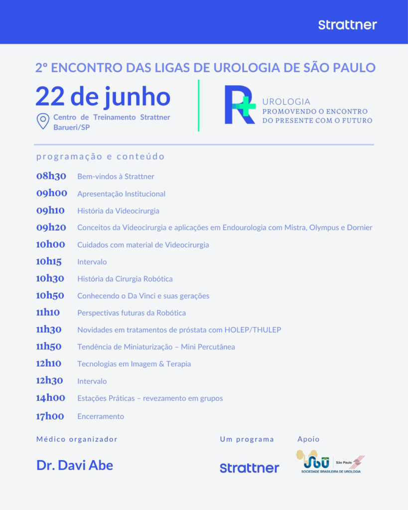 O 2° Encontro das Ligas de urologia de São Paulo será dia 22 de junho, no Centro de Treinamento Strattner, em Barueri – SP.