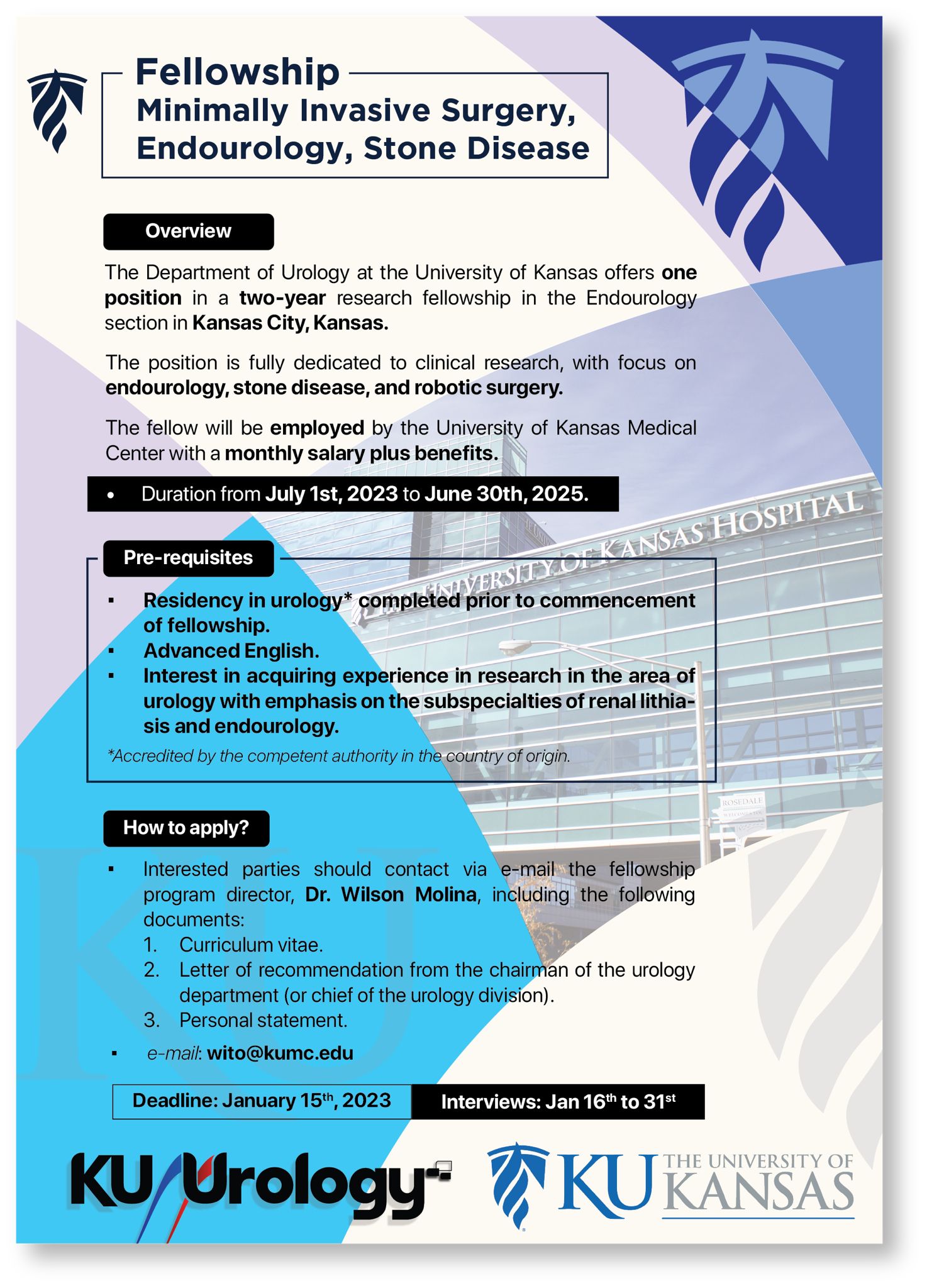 A University of Kansas esta oferecendo uma vaga para Fellowship em seção de Endourologia.