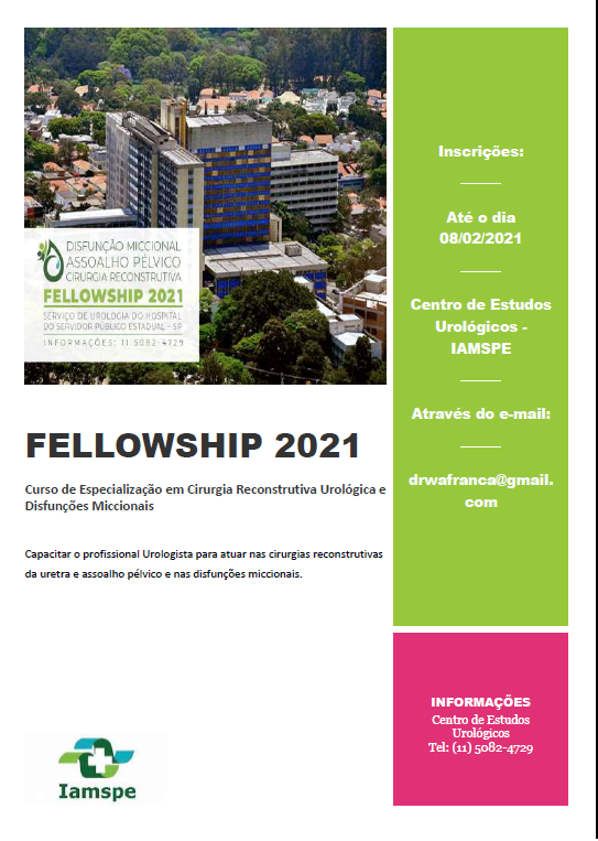 Estão abertas até o próximo dia 08/02 as inscrições para o Curso de Especialização em Cirurgia Reconstrutiva Urológica e Disfunções Miccionais do Hospital do Servidor Público Estadual.
