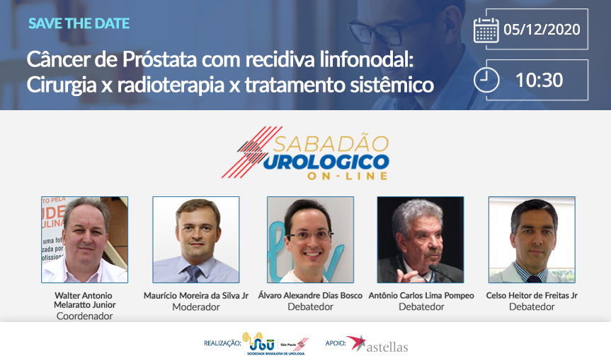 No próximo sábado, ao vivo, às 10:30, venha debater o Câncer de Próstata com recidiva linfonodal: cirurgia x radioterapia x tratamento sistêmico.
