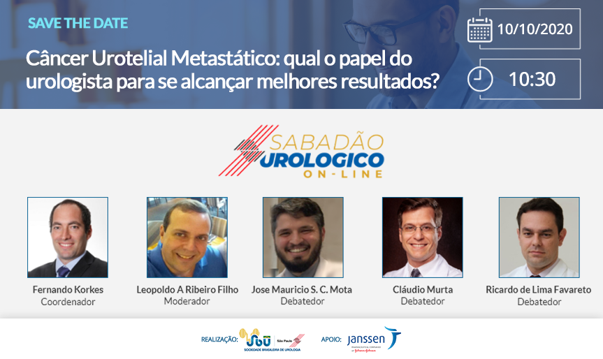 No dia 10 de outubro, ao vivo, a partir das 10:30, o Sabadão Urológico traz para debate o Câncer Urotelilal Metastático: Qual o papel do Urologista para se alcançar melhores resultados?