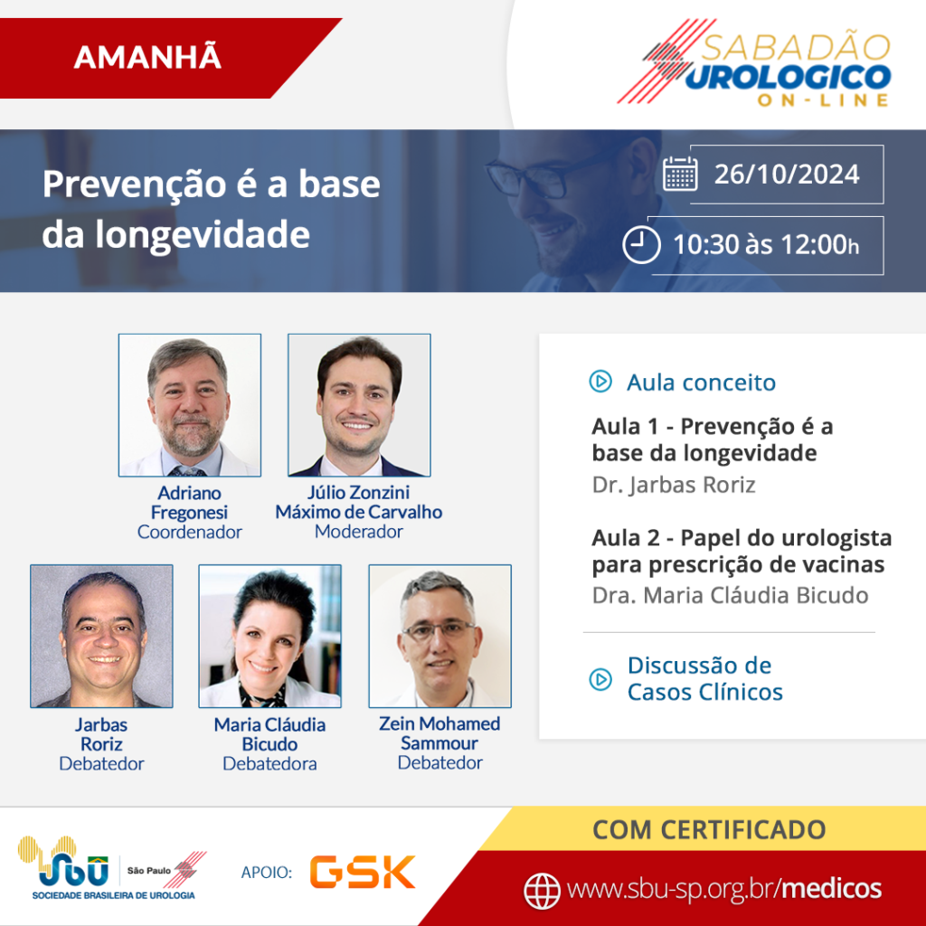 Você é o nosso convidado para o próximo Sabadão Urológico, no dia 26/10, das 10h às 12:30h.