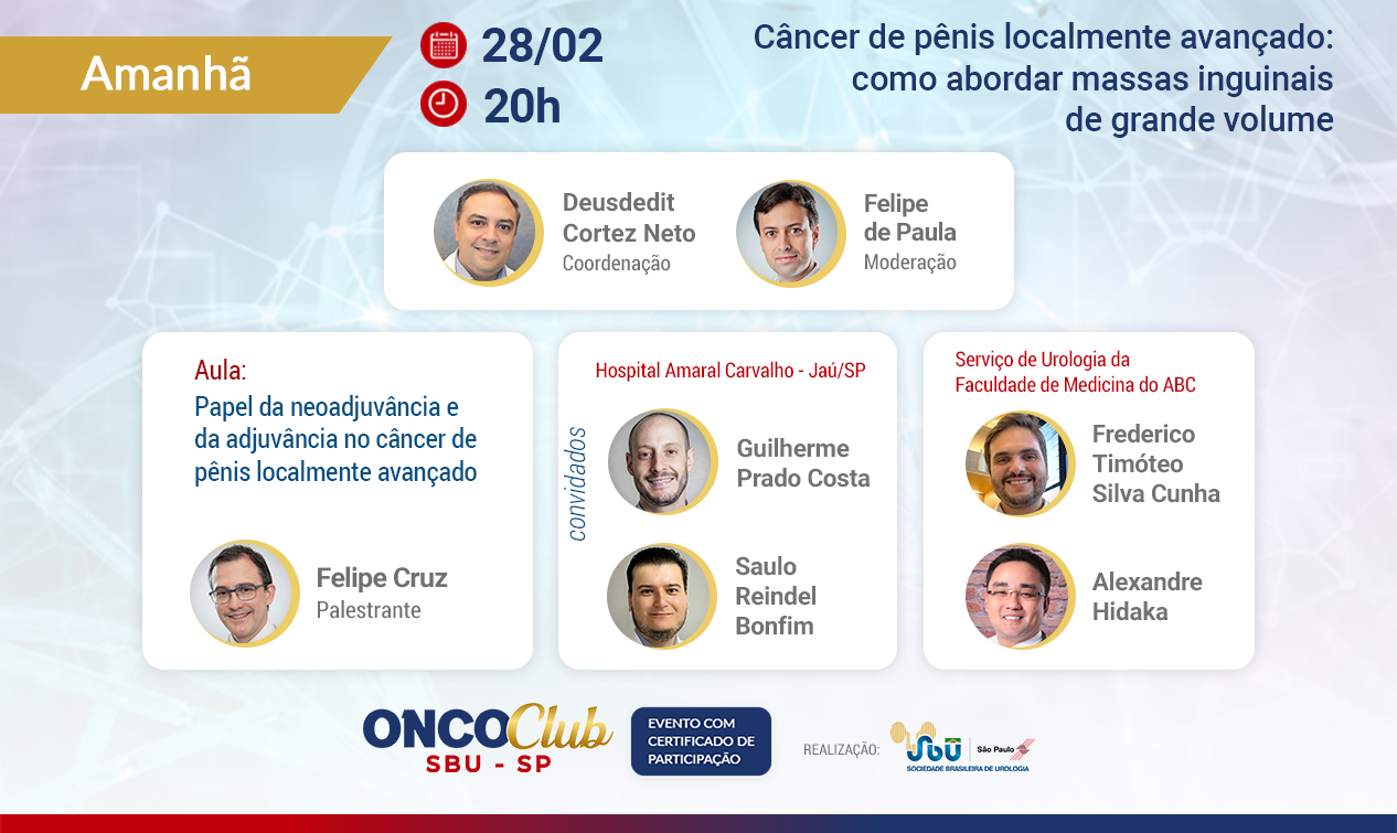 O tema debatido será “Câncer de pênis localmente avançado: como abordar massas inguinais de grande volume”.
