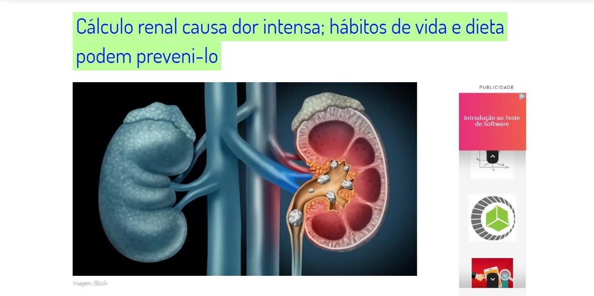 O Blog Viva Vem do portal UOL destacou o cálculo renal em um post sobre Cálculo renal causa dor intensa; hábitos de vida e dieta podem preveni-lo.