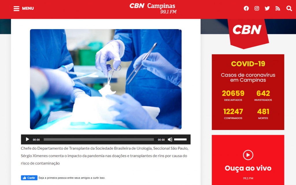 Ouça: https://portalcbncampinas.com.br/2020/07/impacto-da-pandemia-nas-doacoes-e-transplantes-de-rins/