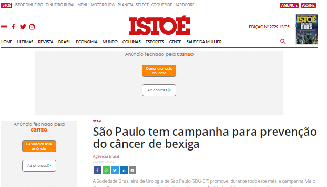 A iniciativa foi destaque no portal de notícias ISTOÉ e contou com uma entrevista do Dr. Fabrizio Messetti, membro da SBU-SP.