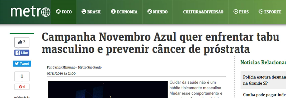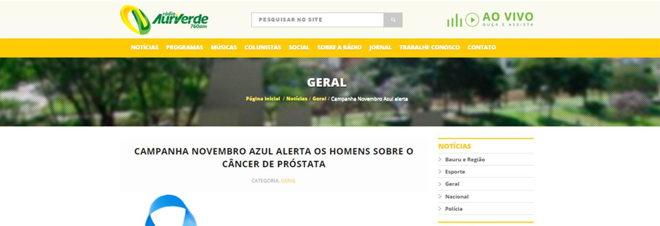 A Rádio Auriverde de Bauru, em entrevista por telefone com o Dr. Amaro, fez matéria sobre o novembro azul.