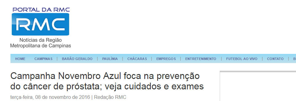 O Portal da RMC (Notícias da Região Metropolitana de Campinas) fez uma matéria sobre as ações do Novembro Azul em entrevista com o Dr. Amaro. Clique aqui e...