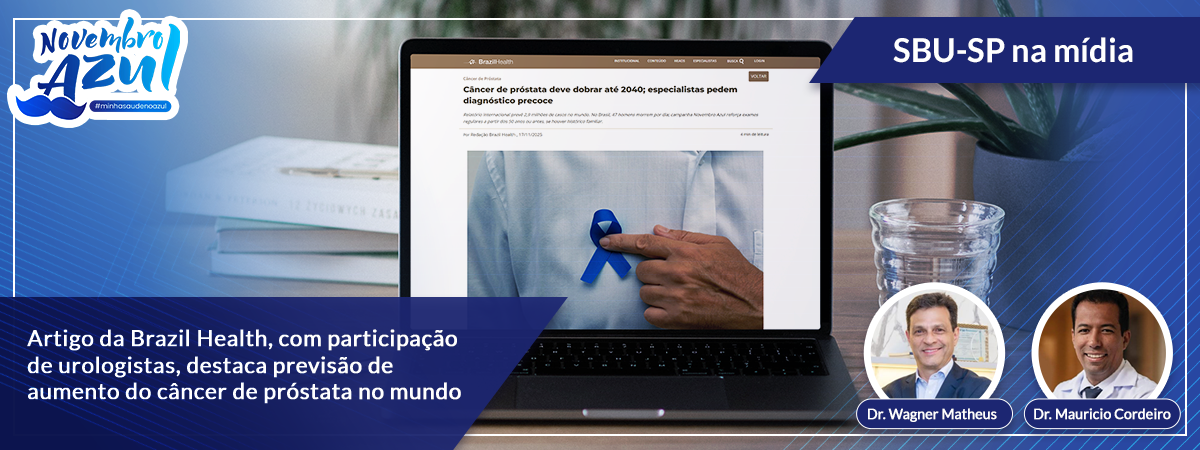 Notícias • Novembro Azul • Novembro Azul 2025 • SBU-SP na mídia Artigo da Brazil Health, com participação de urologistas, destaca previsão de aumento do câncer de próstata no mundo 18 de novembro de 2025